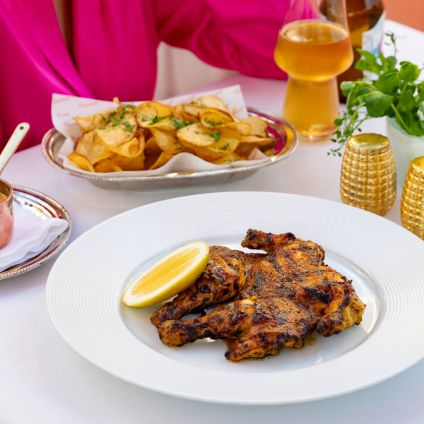 The award-winning menu created by Chef Patron Raphael Duntoye, includes signature dishes; burrata with tomatoes and basil, salt cod croquettes with oven-roasted pepper relish, roast baby chicken marinated in lemon, and sea bream fillet with peppers and confit lemon. AED 135 per person.