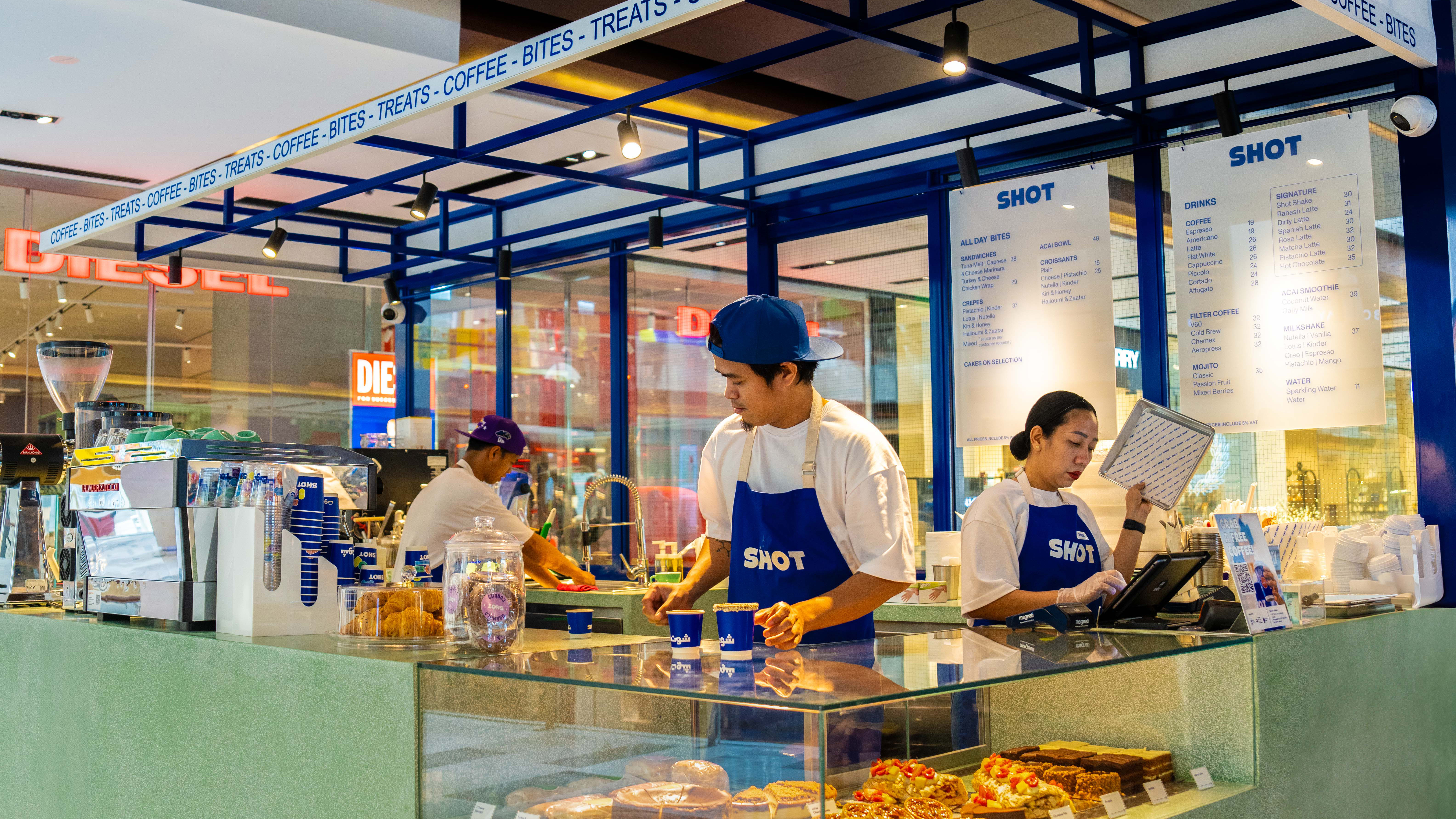 Enjoy signature classics at Starbucks and Caffè Nero, or pair your coffee with indulgent treats from La Romana dal 1947, L'ETO Caffe, SHOT Café and Magnolia Bakery.