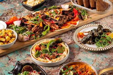 مطعم لبناني نابض بالحياة يقدّم قائمة رمضان غنية بالمقبلات الكلاسيكية والمشاوي المميزة.