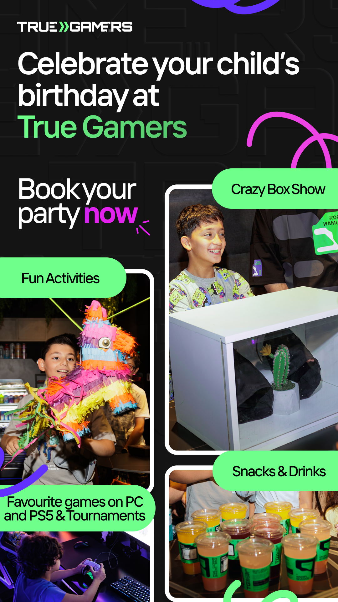 عيشوا تجربة الألعاب المثالية عند "ترو غايمرز"، وجهتكم المفضلة للبنية التحتية المتطورة للرياضات الإلكترونية. تتميز أنديتنا بمعدات من الدرجة الأولى ومناطق حصرية للبث المباشر وكبار الشخصيات وتصميمات سابقة للعصر للالعاب المذهلة. تدريب توجيهي احترافي متاح على جميع المستويات وخدمة عملاء استثنائية، تجعل من "ترو غايمرز" المركز الأكبر للرياضات الإلكترونية في الإمارات العربية المتحدة، حيث ترحب باللاعبين من جميع مستويات المهارة للانضمام إلى مجتمعنا الشامل.
