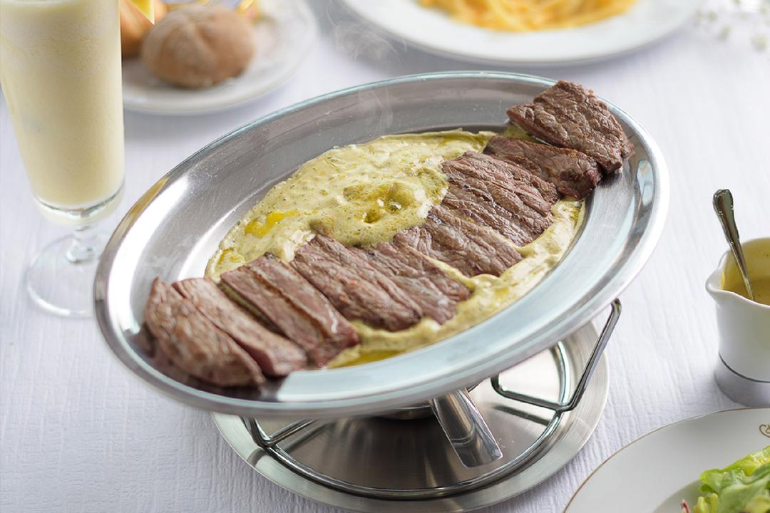 In 1942, Chef Boubier gifted his secret recipe to his daughter and her husband the new owners of the “Café de Paris” restaurant who came up with the idea of offering a single menu formula consisting of a green salad, 200 grams of entrecôte steak with “Café de Paris” butter sauce and homemade French fries. This simple formula gained immediate worldwide fame and success. Many restaurateurs around the world tried to imitate our set formula and our “Café de Paris” butter sauce but never equaled our distinctive taste and texture which explains our motto: "Toujours Imitée, Jamais Egalée".
